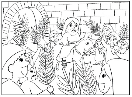 Adik-adik bisa menggambar Yesus yang memasuki Kota Yerusalem seperti dibawah ini lalu mewarnainya.