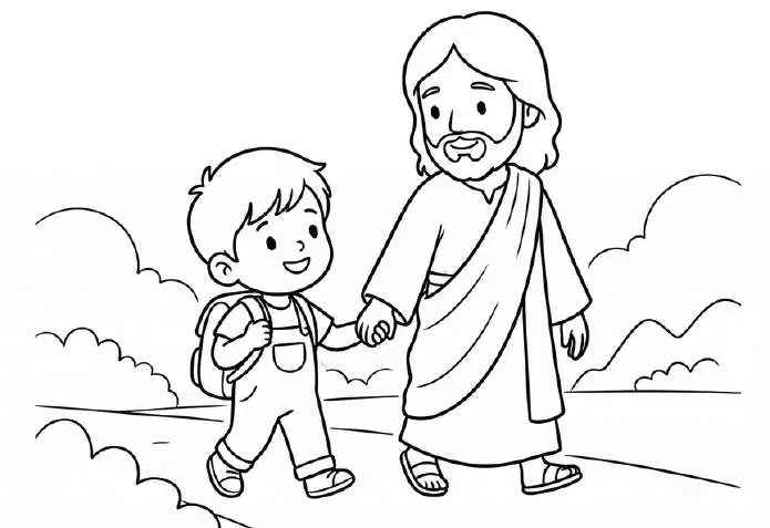 Warnai gambar di bawah ini dan Tuliskan di bawah gambar: “Aku kuat karena Tuhan menyertaiku”