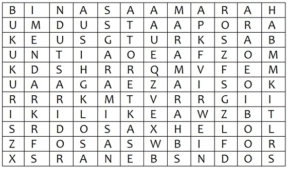 Teman-teman coba carilah beberapa kata tersembunyi yang ada pada bacaan hari ini. Ada 7 kata yang tersembunyi. Caranya kalian harus mencari dengan sabar.