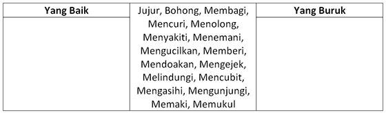 Aktivitas: Seperti penampi, Pisahkanlah perbuatan yang baik dan buruk pada kotak di bawah ini !