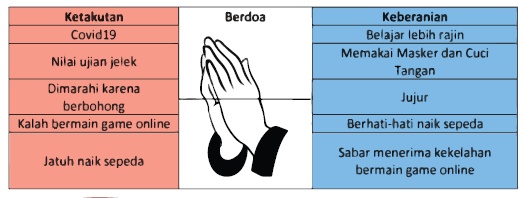 Buatlah garis antara kolom yang berisikan ketakutan dan keberanian.