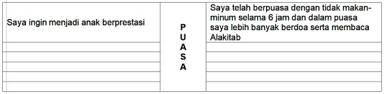 Aktivitas: Buatlah daftar permohonan kepada Tuhan dan mari berkomitmen untuk melakukan puasa.