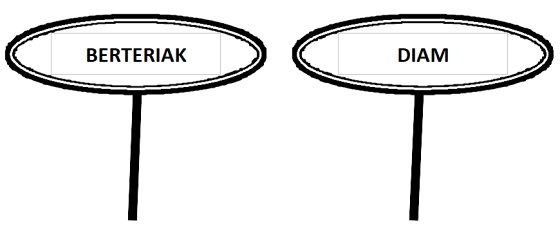 Aktivitas ini dikerjakan bersama, maka pamong perlu membuat pilihan jawaban dalam ukuran besar dan diberi lidi. Nanti setiap sampai pada bagian yang harus dijawab oleh anak maka pamong mengangkat pilihan jawabannya.