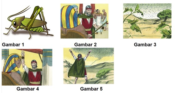 Siapa yang tahu makanannya belalang? (Beri waktu anak-anak menjawab) Yach…makanannya belalang adalah dedaunan. Hari ini kita akan mendengarkan cerita tentang belalang yang terjadi di daerah Mesir.